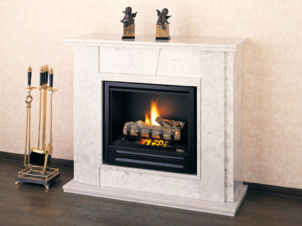 見た目にも本物の暖炉と変わらない美しさ、ガスを使った暖房効率、使い勝手のよさが自慢です。
